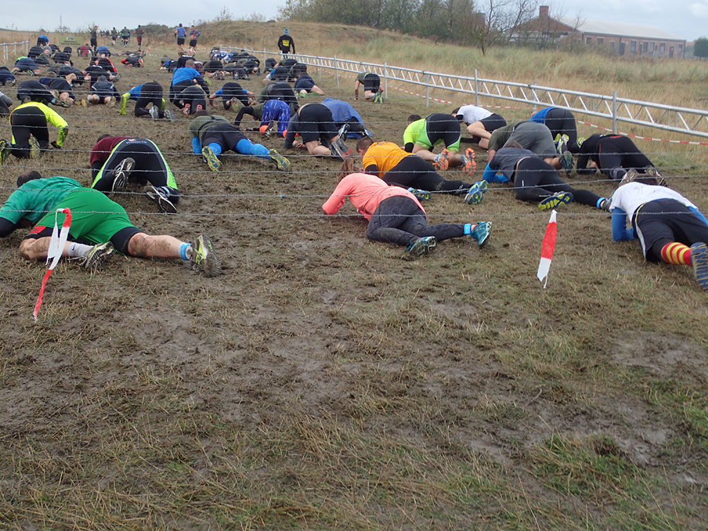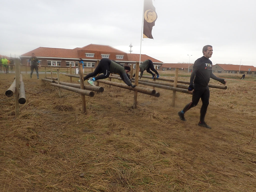 Mitte November. Die Tage werden kürzer, kälter und unangenehmer. Die Temperaturen sinken gegen den Gefrierpunkt. Und genau zu dieser Jahreszeit findet der NEPTUNUS RUN in Nieuwpoort, Belgien, der Abschlußlauf der KBC Spartacus Serie, statt. Da wir uns bereits in der Wintersaison befinden, war dies für mich eine gute Gelegenheit, die kälteren Temperaturen am Strand von Belgien einmal anzutesten. Kombiniert mit einer zu erwartenden steifen Brise wäre dies eine gute Gelegenheit,mich mental auf die kommenden Monate einzustimmen. Bei 4 °C machte ich mich Sonntag früh auf den Weg nach Westen an die belgische Nordseeküste. Mein erster Hindernislauf nach rund 4 Wochen Pause. Nach 3 stündiger Fahrt parkte ich mein Fahrzeug auf einem Feldweg nahe der Kaserne und schnupperte dabei die erste Meeresbrise. Und war überrascht. 8 °C Außentemperatur, doppelt so warm wie im Rheinland. Ich war viel zu warm angezogen. Trotz leichtem Nieselregen entledigte ich mich meines Midlayers. Wie soch später herausstellte, war dies die richtige Entscheidung, denn so war die „Wärme“ besser zu ertragen. Nach einem fünfmiütigem Fußmarsch erreichte ich das Veranstaltungsgelände, eine Kaserne an der Mündung der Yser, die an dieser Stelle in die See strömte. Das Areal war gut ausgeschildert, sodaß ich trotz meiner eingeschränkten niederländischen bzw. französischen Sprachkenntnisse mühelos die Anmeldung fand. Wie beim RACE AGAINST NATURE war die Organisation des Events durchdacht und hatte Hand und Fuß. Alle Einrichtung wie Anmeldung, Taschenabgabe oder Umkleide waren gut ausgeschildert und ausreichend dimensioniert. Bei der Anmeldung zum Event erhält man eine fixe Startzeit zugetielt, die mit einem farbigen Armband um das Handgelenk gekennzeichnet wird. So sind die Startgruppen überschaubar und Wartezeiten an der Hindernissen werden minimiert. Meines Erachtens eine sinnvolle Maßnahme. So ging es für mich um 13:30 Uhr auf den Parcours.
